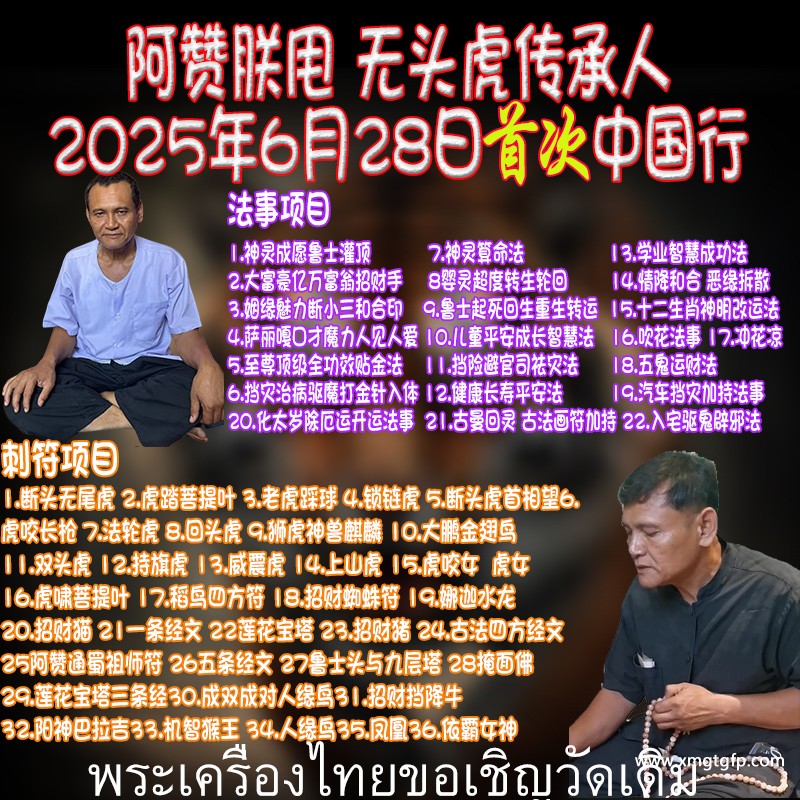 泰国🇹🇭法师2025年6月28日广州法会火爆预定中 中国祈福法会6月份开幕、 大城市法会、泰国无头虎传人“阿赞朕甩”(阿赞浸甩/阿赞詹啦)中国粉丝见面会