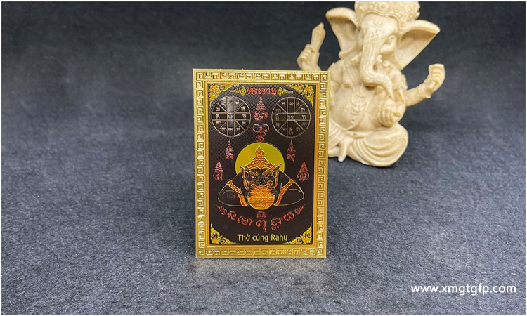 每个人都会有运程起伏,好运时得到贵人扶持,行衰运便会遇到小人。小人作恶多端,不但亲近不得,还要多方设法去克制它,使它不能作祟。泰国人克制小人的方法是配戴「啦胡天神」的佛像。啦胡天神佛像是通体黑色,头戴华盖,豹眼獠牙,身躯高大,口中咬着太阳或月亮,神情十分凶恶,使人望而生畏。拉胡天神 经文符片