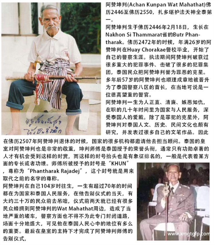 阿赞坤潘(Achan Kunpan Wat Mahathat)佛历2446至佛历2550,扎多堪护法天神全泰都很有名气。