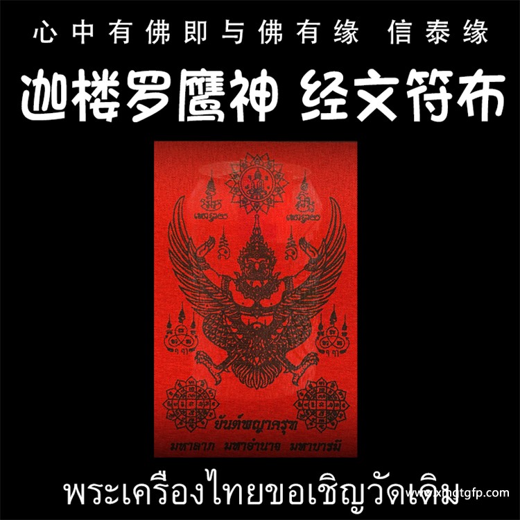 代表着至高无上的领导权势与威仪气势,引申为青云直上、领导统驭、官运招财寓意,多年来口碑即有成功富贵圣物之美誉。 迦楼罗 鹰神 经文符布