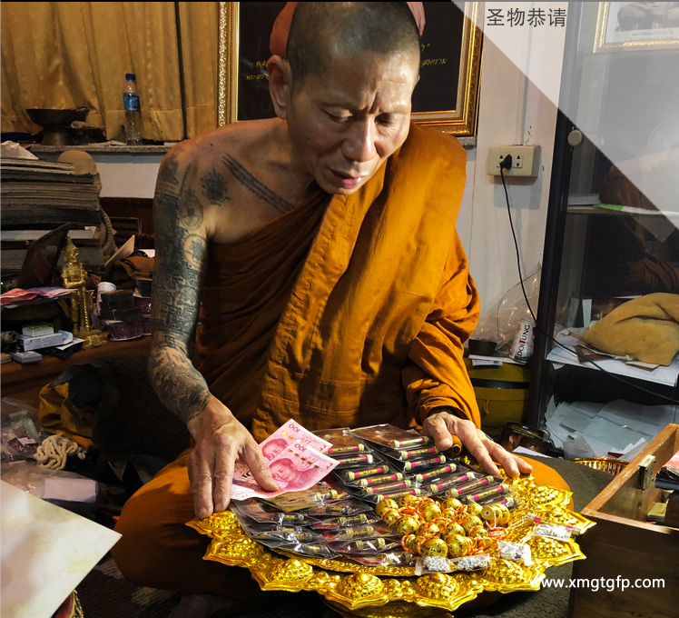 龙婆乐师傅是当代符管王,是秦国符管猴神迷千军的当代传人师傅督造符管十分用心每一片都是经过师傅一边写边经文制作。还要看时辰有时半夜才可以写。制作好之后师傅不断加持满3个月才可以出庙还有一些是一生只做一回。当地善信恭请的入多。各国善信也慕名而来恭请圣物,所以能请到师傅的圣物也是缘分呢。