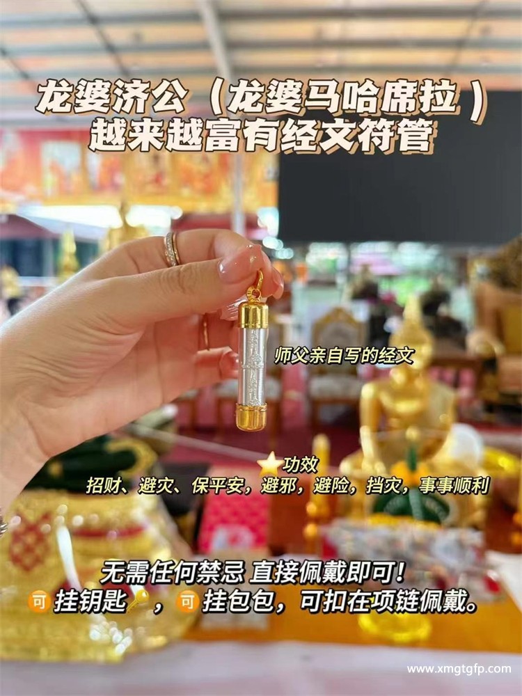 有一位商人面临破产,后来经人介绍来拜访师傅,并请师傅用法门帮忙改善他们的生活。之后他的生意火红,从面临破产到现在生意步步高升。*后这位商人成为了师傅的贴身助理。还有些信徒因疫情关系,缺少生意基金,师傅慈悲写了乐透号码给信徒,结果真的中了乐透彩券!今年9月, 泰国公主诗琳通殿下派了近身代表到庙供养师傅。泰国佛牌 龙婆马哈希拉 财富经文符管