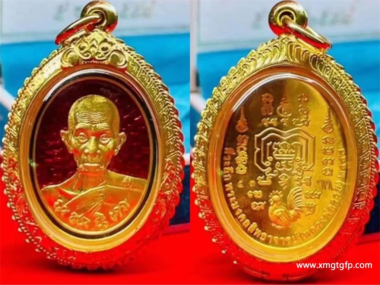 4.金属牌:此类佛牌为各种金属材质,例如:金、银、铜、铅、钵盂、铜钟等等法器熔化制成,而我们常见的九宝铜、阿百架材质则是由这些金属混合而成,这类佛牌开模要求高,工序复杂,特点就是可以长期保存、不易损坏,例如:药师佛、师傅立尊、四面神立尊等等。