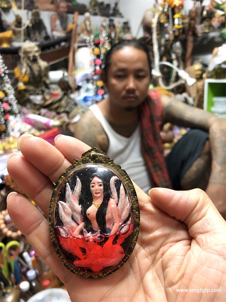并且都是租的房子一月房子一千元人民币,师傅俭朴把钱全部捐给寺庙做功德,每天上他家的国善信不计其数,很多国内外拳王,歌星,等等都去找师傅做法!阿赞湾猜 九尾狐仙 泰国佛牌