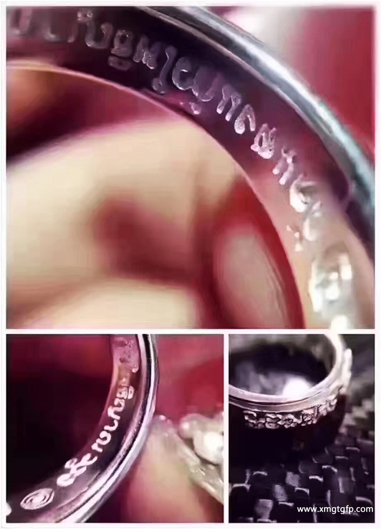 【圣物材料】纯银,戒指内壁外壁都刻有大师的经文,另外戒指中间刻经文部分可以转动