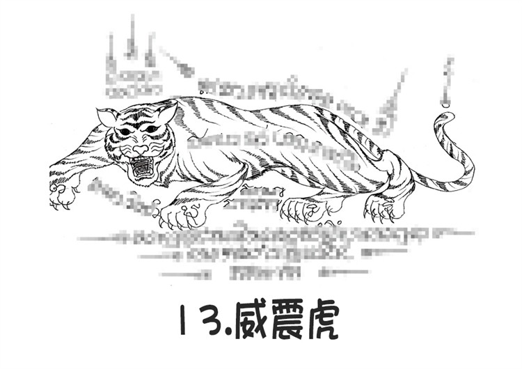 威震虎:增加自信、权利勇气、避险、掌控大局。阿赞朕甩 无头虎 威震虎 泰国银针刺符 古法纹身