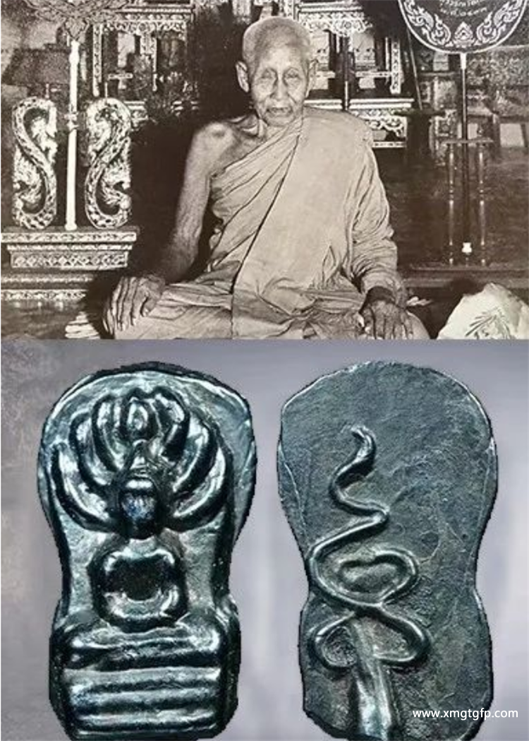 这款七龙佛发行于佛历2473年,对于不少人来说这也是一位陌生的师傅,师傅本身法术修为很高,跟当时的僧王山卡拉培、龙婆boon等师傅交情很好,经常探讨佛法,这期七龙佛在材质上有铜、铜镀金、银和稀少的麦卡锡四种,而师父除了做七龙佛厉害,做崇迪佛、自身也非常厉害,同样也是很多老道藏家的心头好。