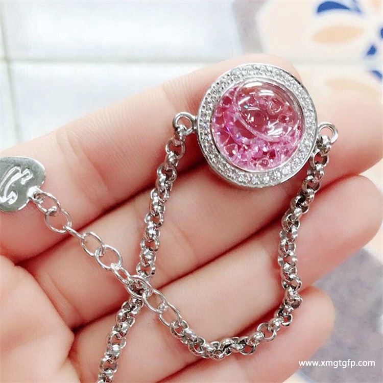 整条链子都是师傅自己设计的,材质是纯银镀了18k金,不会变色不会发黑,外壳里外都有镶钻,而且都是师父手工镶嵌上去的,非常用心,如果你知道他的材质和制作过程就不觉得他贵了,比起你到百货公司买条没功效没效果的名牌手链,还要更值得更别具意义。
