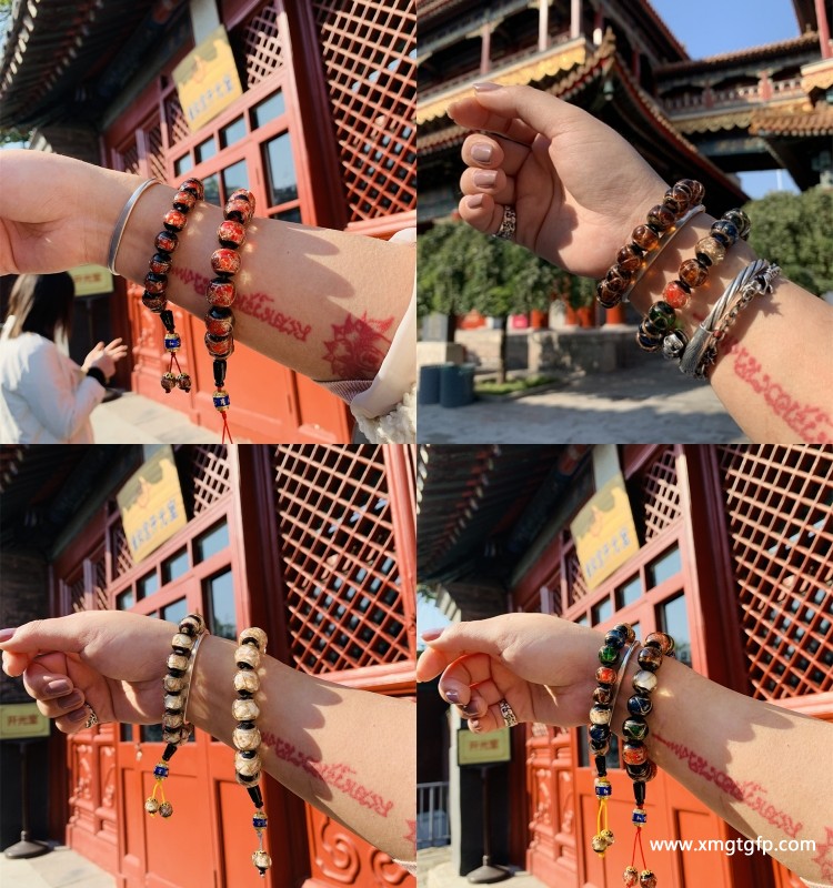 是用雍和宫旺盛的香灰烧制而成的古法琉璃手串,并由雍和宫师傅开光加持。雍和宫香灰琉璃手串具有“金、木、水、火、土”五行调理作用和平衡作用。雍和宫 香灰琉璃手串