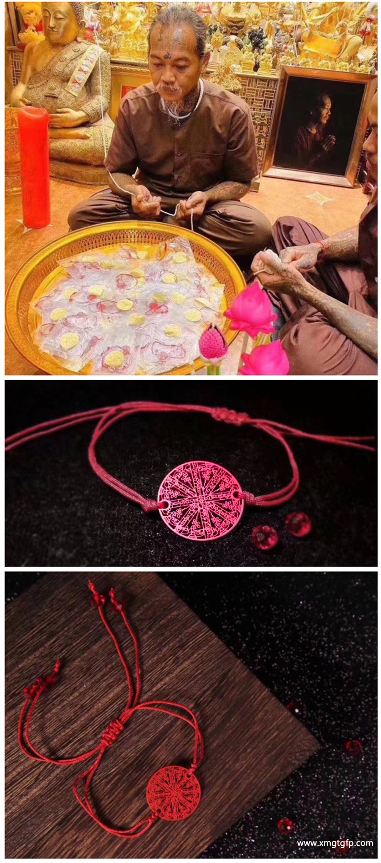 注: 宝贝佩戴后红色会慢慢褪色成铜金色,介意勿拍 泰国佛牌 阿赞佑 太岁财运手绳手链