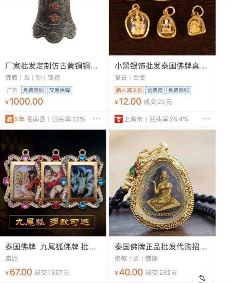 但是现在呢,泰国佛牌的文化已经慢慢走向商业化了,甚至可以说工业化。以前我们说泰国只有假牌,后来慢慢就有了工业牌,也就是商业牌,这个已经到了什么程度了?就是中国是世界工厂啊,现在很多泰国佛牌,就是中国生产,批发给泰国,然后泰国那边在运到佛牌市场里,然后一些旅游寺庙啊代购啊之类的,就是从这些佛牌市场里再把这些牌转卖给中国客户。我就曾经看到过有一个牌商,在假牌一条街买了一堆牌,然后在附近找了个师傅,让他拿着牌子拍照,没错,假牌街也是有僧侣的,在那边买了牌子,都是可以找他们一起拍照的。那个牌商后来在曼谷的中国牌商大会上我也见过,是一个号称专门跑庙只做正庙牌的女孩。泰国佛牌