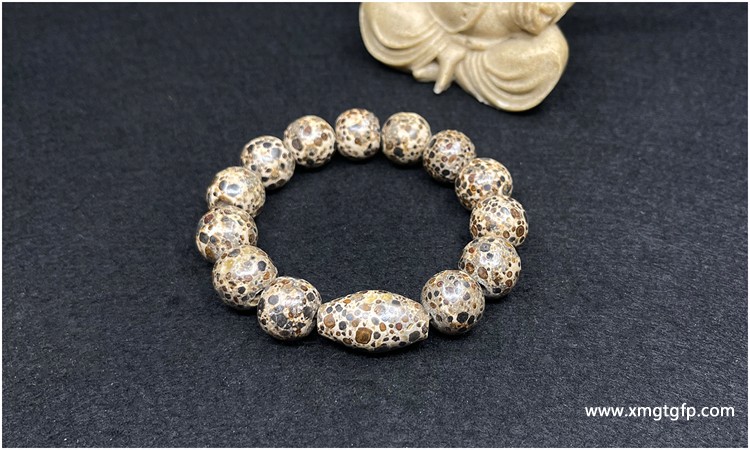 舍利子相互粘结间的石材,受其灵气影响,亦具相当之磁场,其材质,有的温润若玉,亦有粗糙石质。