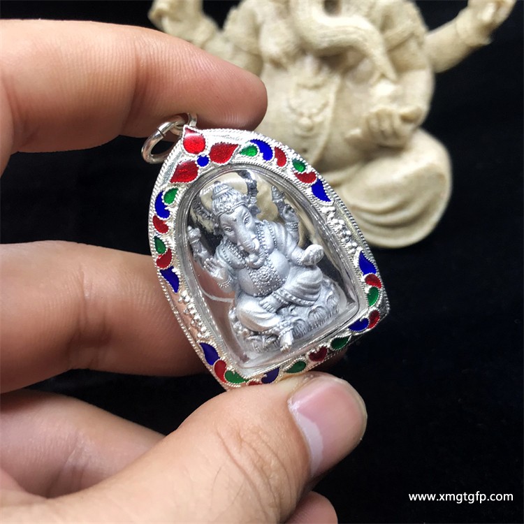 【圣物功效】增智慧,助学业,求事成愿,增财运,人缘,官运权力!象神是泰国佛牌里面一尊比较常见的佛像,很多大师都有督造像神佛牌,像神是代表财富、智慧、权力、健康、成功只要诚心祈求可以排除衣切困难,让佩戴者带来无比的好运。此像神内部含有泰文称“噶铃”是一种铃铛摇晃起来可以清晰听见清脆声音、有很好的转运功效泰国佛牌