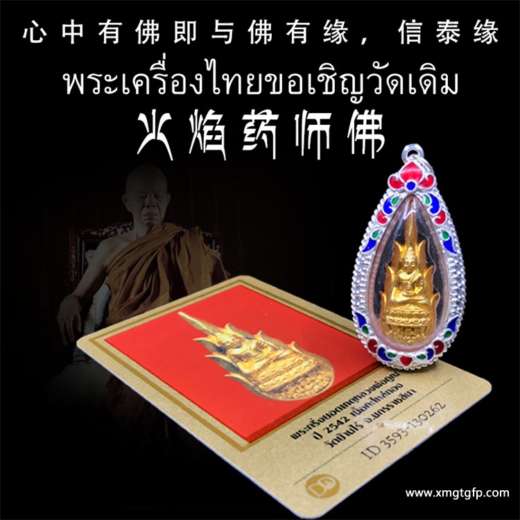 【功效】保平安、健康、提高声誉、增进财富、清障、转运、招人缘 泰国佛牌 龙婆坤 2542 火焰药师佛