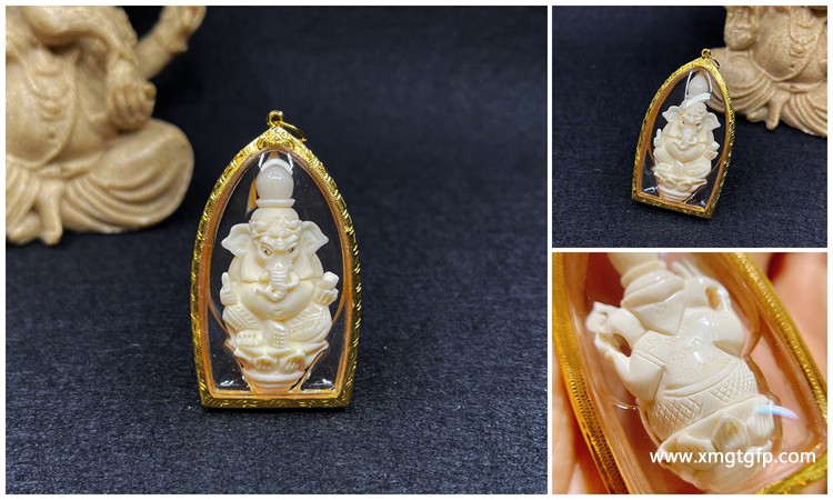 增智慧,助学业,求事成愿,增财运,人缘,官运权力!像神是泰国佛牌里面一尊比较常见的佛像,很多大师都有督造象神佛牌,像神是代表财富、智慧、权力、健康、成功只要诚心祈求可以排除衣切困难,让佩戴者带来无比的好运。此像神内部含有泰文称“噶铃”是一种铃铛摇晃起来可以清晰听见清脆声音、有很好的转运功效
