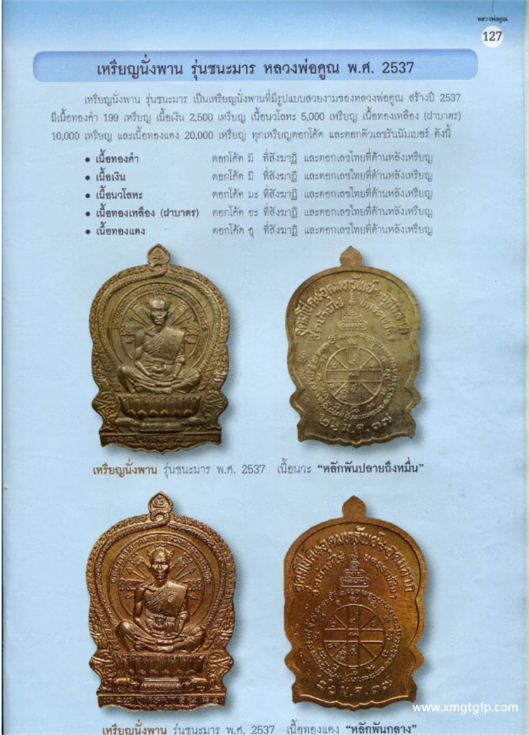 纯金版,发行199尊,是以套装形式发行,一套5枚,包含纯金,纯银,九宝铜,黄铜,以及红铜,这一套里的每一尊背面的编号以泰语雕刻